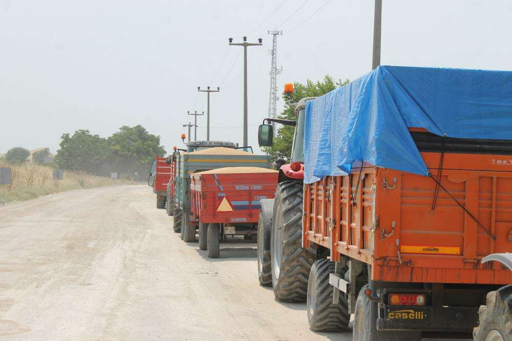 Sıcak havadan dolayı adeta piştiğini söyleyen Edirneli çiftçilerden Halit Uçel, gece saat 2 buçuktan beri beklediğini belirterek, Sıcaktan dolayı traktöre binsem de sağa sola gitsem de huzursuz oluyorum. Verimler çok şükür ne iyi ne kötü, ortalama iyi yani. Ben 30-35 kilometre yoldan buraya geldim. Borsadan 5 ile 6 küsurata alım oluyor. Tüccar ürünü çiftçiden alıyor, gelip TMO’ya satıyor. 5 liraya alıyor, gelip 8 buçuk 9 liraya satıyor. Çalışırsın emek verirsin ama tüccar senin ekininden para kazanır. Sıcak havaya ve toza rağmen mecburuz devam etmeye, çalışıyoruz” ifadelerini kullandı.