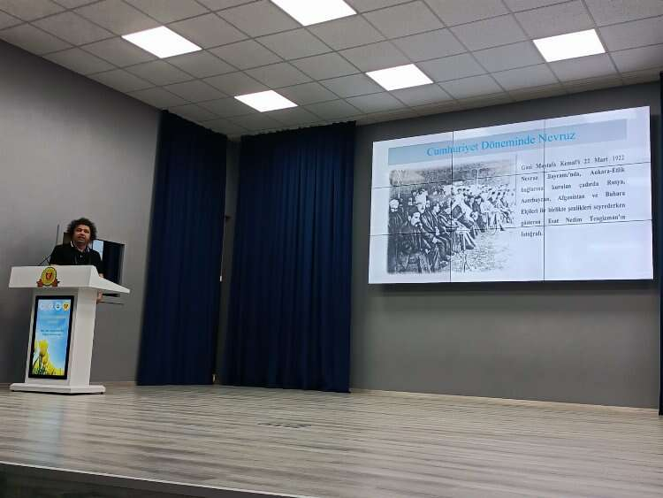 Trakya Üniversitesi Öğretim Görevlisi Haluk Kayıcı, Edirne Lisesi’nde düzenlenen “Türk Kültüründe Nevruz” konferansında Nevruz Bayramı’nın anlamı ve önemini anlattı.