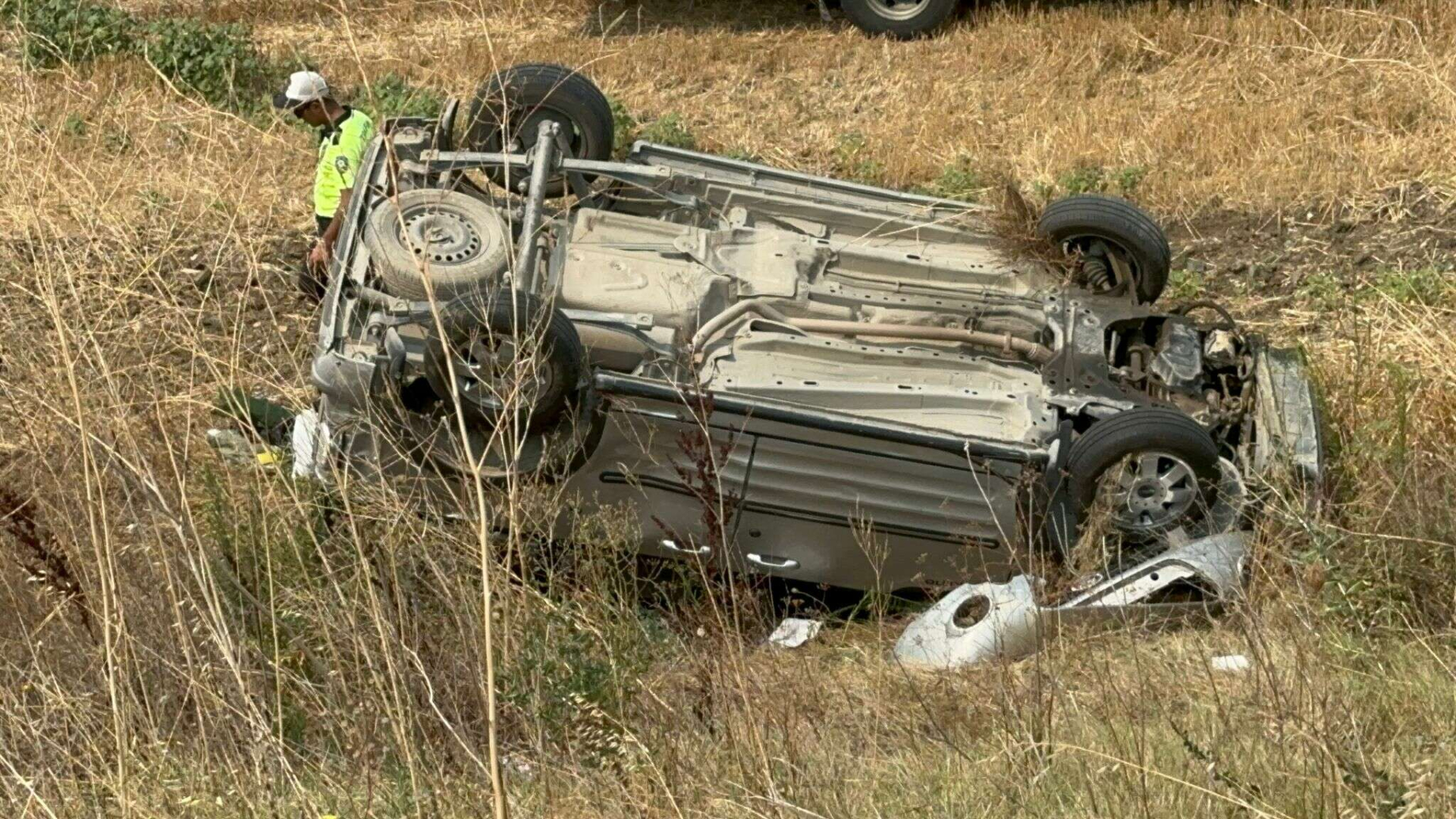 Kaza sonrası eşi Y.S. ve 9 yaşındaki kızı M.S.'yi ters dönen araçtan çıkartan baba S.S, çevredeki vatandaşlardan yardım istedi.