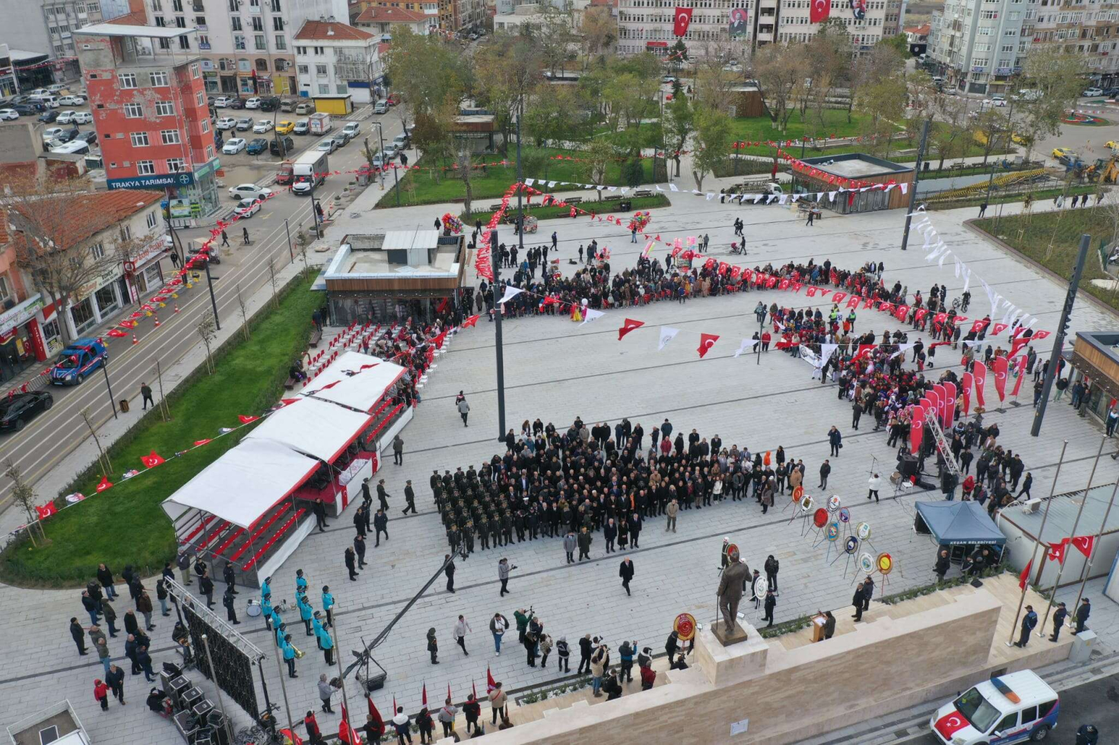 Kutlama programı; Atatürk Anıtı’na çelenklerin sunulmasının ardından Keşan Belediye Bandosu eşliğinde saygı duruşunda bulunulması ve İstiklal Marşı’nın okunması başlarken; günün anlam ve önemini belirten konuşmayı Keşan Belediye Başkanı Mustafa Helvacıoğlu yaptı.