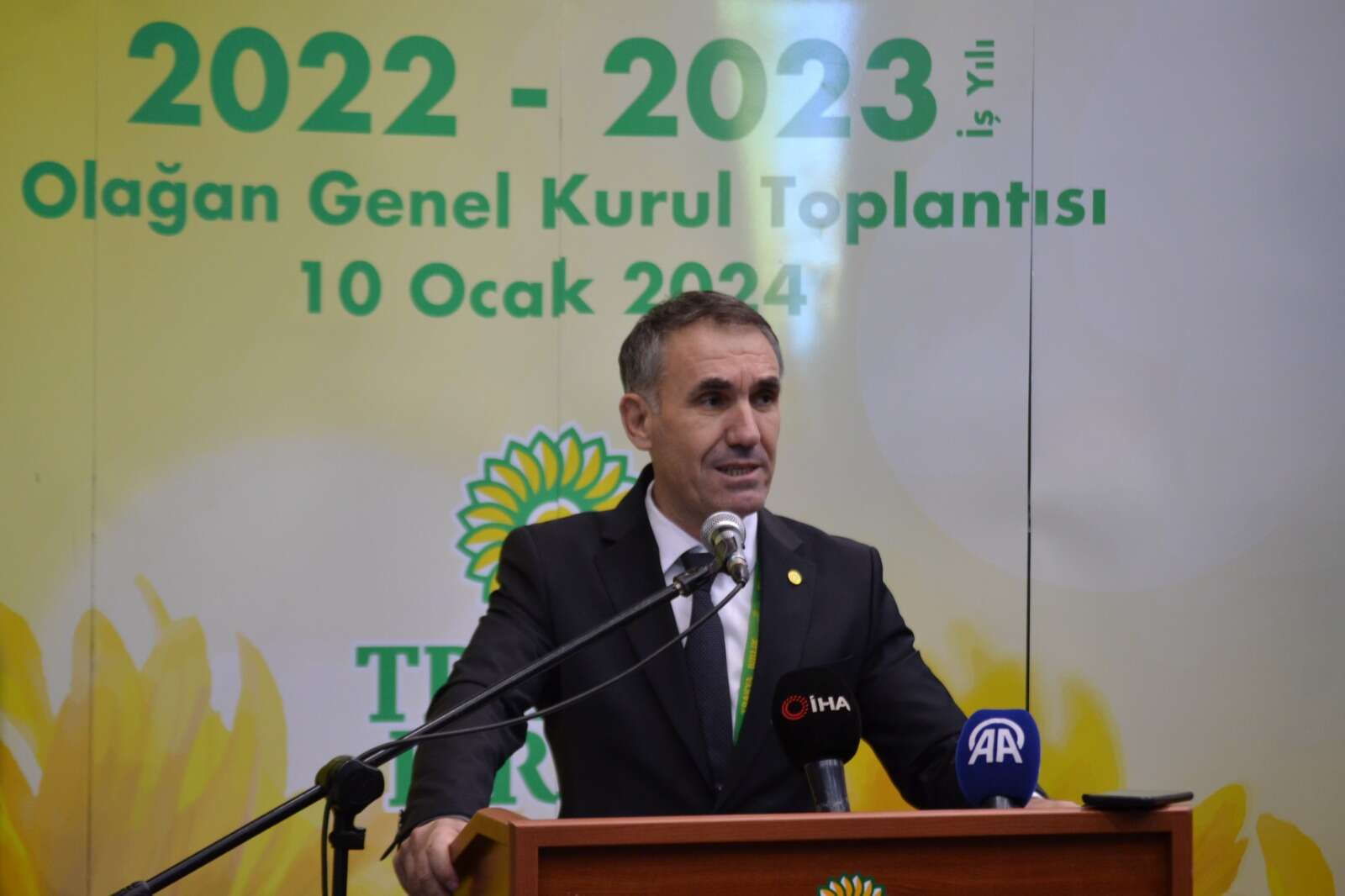 Kırbiç, konuşmasında genel kurula katılan delegelere teşekkür ederek; “Trakya Birlik, küçük bir fidandan büyük bir ormana, ülkemizin 13 ilinde 48 kooperatife, Türkiye’de söz sahibi olan üretim miktarına erişmiş, bu zamana kadar birlik ve beraberlikle gelmiştir. Geçtiğimiz kampanya döneminde kooperatiflerimizce çiftçilerimize yaklaşık 14 bin ton gübre satışı, 160 bin litre zirai ilaç, kooperatif ortaklarına da yaklaşık 67 bin çuval tohum satışı gerçekleştirilmiştir. Yaklaşık 197 bin ton fenni yem, 23 bin ton çuvallı küspe satışı yapılmıştır. Kısa ve uzun vadeli olmak üzere ortaklarımıza yaklaşık 2 milyar 297 milyon TL ayni ve nakdi olmak üzere kredi kullandırılmıştır. Geçtiğimiz kampanya döneminde ortaklarımıza yaklaşık 294 bin ton ürün mübayası gerçekleştirilmiş, bunun bedeli olarak da yaklaşık 4 milyar 325 milyon TL ödemesi yapılmıştır” ifadelerini kullandı.