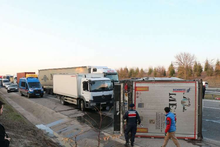 Kaza nedeniyle otoyolun İstanbul yönü ulaşıma kapandı, uzun araç kuyruğu oluştu.