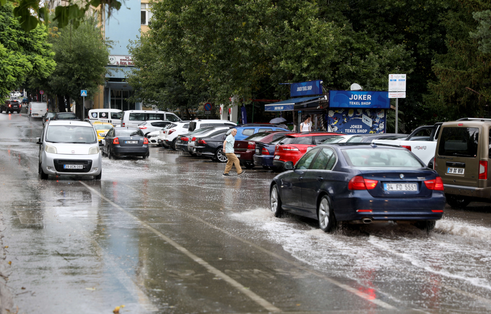 Kentte aniden başlayan sağanak nedeniyle bazı vatandaşlar iş merkezlerinin girişi, dükkanların güneşlikleri, otobüs durakları gibi korunaklı yerlere sığındı.