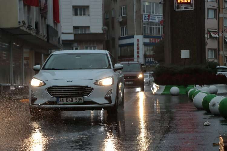 Hava sıcaklığının 10 derece ölçüldüğü kentte, sağanağın gün boyu aralıklarla sürmesi bekleniyor.