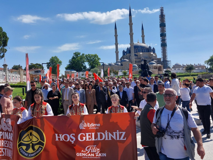 Edirne’de 663’üncü Tarihi Kırkpınar Yağlı Güreşleri haftasının 5’inci günüde Kırkpınar Ağası Seyfettin Selim, Selimiye Meydanı’nda karşılandı. Karşılamaya, Edirne Valisi Yunus Sezer, Cumhuriyet Halk Partisi (CHP) Edirne Milletvekili Ediz Ün, CHP Edirne Milletvekili Ahmet Baran Yazgan, Edirne Belediye Başkanı Av. Filiz Gencan Akın, Türkiye Geleneksel Güreşler Federasyonu Başkanı İbrahim Türkiş, siyasi parti temsilcileri, kurum müdürleri ve vatandaşlar katıldı.