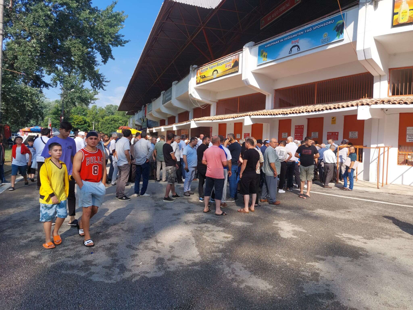 Edirne’de 662. Kırkpınar Yağlı Güreşlerini izlemeye gelen vatandaşlar bilet satış noktalarında yoğunluk oluşturuyor. Tüm boyların dualı çayıra çıkacağı günde vatandaşın ilgisi gözden kaçmadı sevdikleri pehlivanları izlemeye gelen vatandaşlar bilet satış noktaları ve tribün önlerinde sıra oluşturuyor.