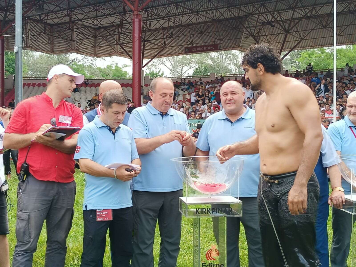 Kura çekimi sırasında adları okunan başpehlivanlardan Ali Gürbüz, Orhan Okulu ve Cengizhan Şimşek seyirciden yoğun alkış alırken, bir grup seyirci ise Mustafa Taş'a tepki gösterdi.