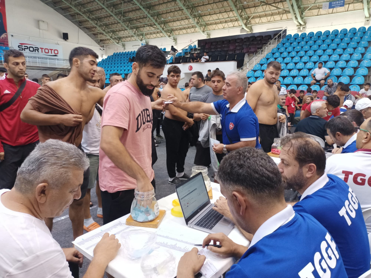Sabahın erken saatlerinden itibaren minik 1, minik 2, teşvik 1, teşvik 2, tozkoparan, ayak, deste 1, deste 2, deste 3, küçük orta küçük, küçük orta büyük, büyük orta, başaltı ve baş boylarında kayıt yaptırmaya başlayan pehlivanlar, ayrıca kura çekerek kol bağlayacakları ilk rakiplerini belirliyorlar.