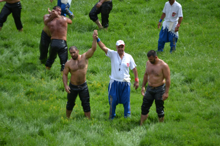 Er Meydanı’na bugün saat 15.00’te çıkan 22 başpehlivan, 2’nci tura yükselmek için kıyasıya güreştiler. Güreşler sırasında güreşseverler arasında tartışma da yaşandı.