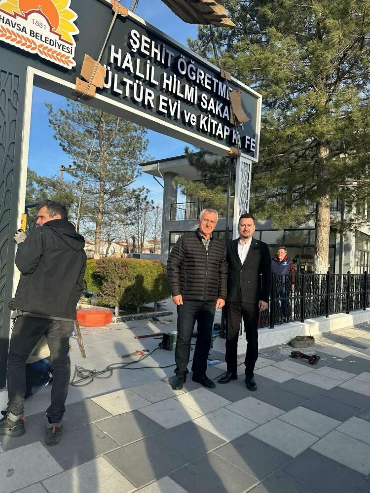 Balkan, “Kitap kafemizin tamamlanmasına sayılı günler kaldı. Kitap kafemize geçtiğimiz haftalarda kitaplıları monte ederek masaları yerleştirdik. Bugün de ‘Şehit Öğretmen Halil Hilmi Sakarya Kültür Evi ve Kitap Kafe’nin giriş kapısını monte ettik. İnşallah önümüzdeki günlerde de çalışması devam eden bahçe işlerinin tamamlanmasıyla kitap kafemizi gençlerimizin hizmetine sunacağız. Yeni nesil kitap kafemiz ile öğrencilerimizin ders çalışması daha da keyifli bir hale gelecek. Kitap kafemiz Havsa’mıza ve öğrencilerimize hayırlı olsun” diye konuştu.
