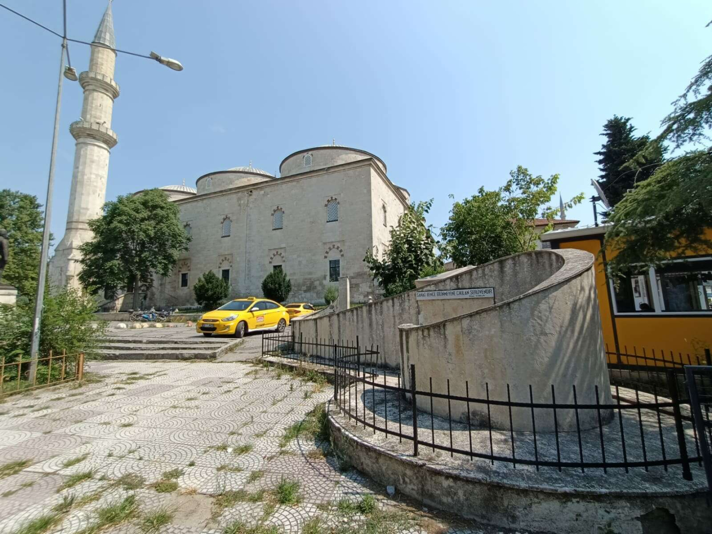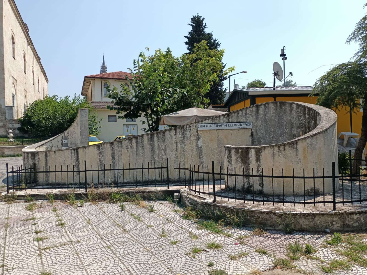 Bayraktar, anıtın çevresindeki tarihi dokuya da dikkat çekerek; “Bunların yanı sıra anıt, tarihsel çevresi ve farklı dönemlerden gelen eserlerin bir aradalığında kurulduğu periferik estetik diyaloğa katkı sağlaması anlamında da bir rolü bulunmaktadır. 15’inci yüzyıldan gelen Eski Cami ve Bedesten, 16’ncı yüzyıldan gelen Rüstempaşa Kervansarayı, erken 20’nci yüzyıl Müezzinler Okulu (Vakıflar Bölge Müdürlüğü) gibi mimari eserlerin ortasındaki alanın bir meydan alan haline gelmesinde son dokunuşu yapmaktadır” sözlerine yer verdi.