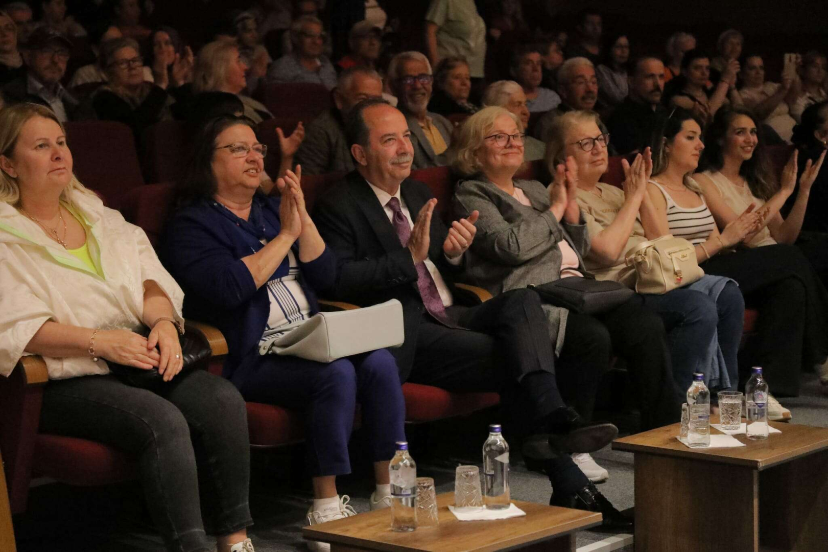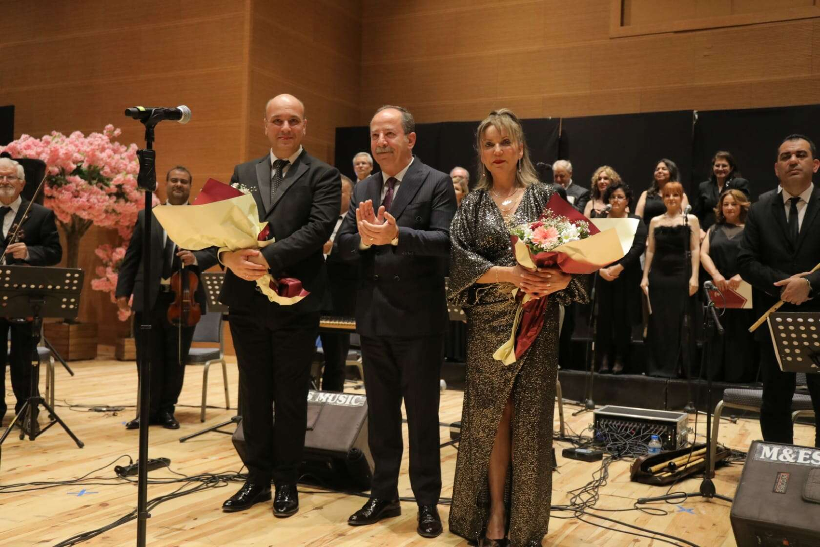Gürkan, konser bitimi Koro şefleri Ebru Gövez Balkan ve Seven Sansı’yı tebrik çiçeğini takdim ederek, teşekkürlerini iletti.
