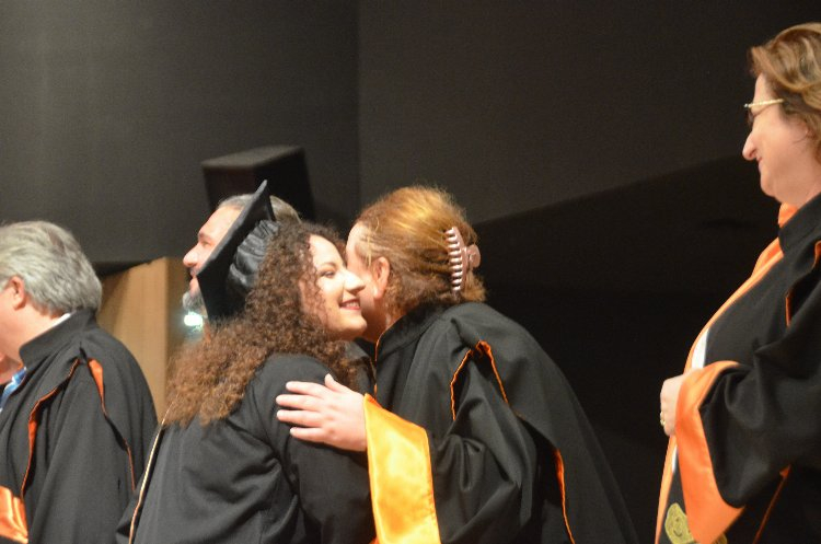 Konuşmaların ardından törende akademisyenler ve öğrenciler tek tek sahneye davet edildi. Akademisyenler, mezun olan öğrencileri tebrik etti ve mezuniyet belgelerini takdim etti. Törenin sonunda öğrenciler mezuniyet andını okudu ve kep attı.