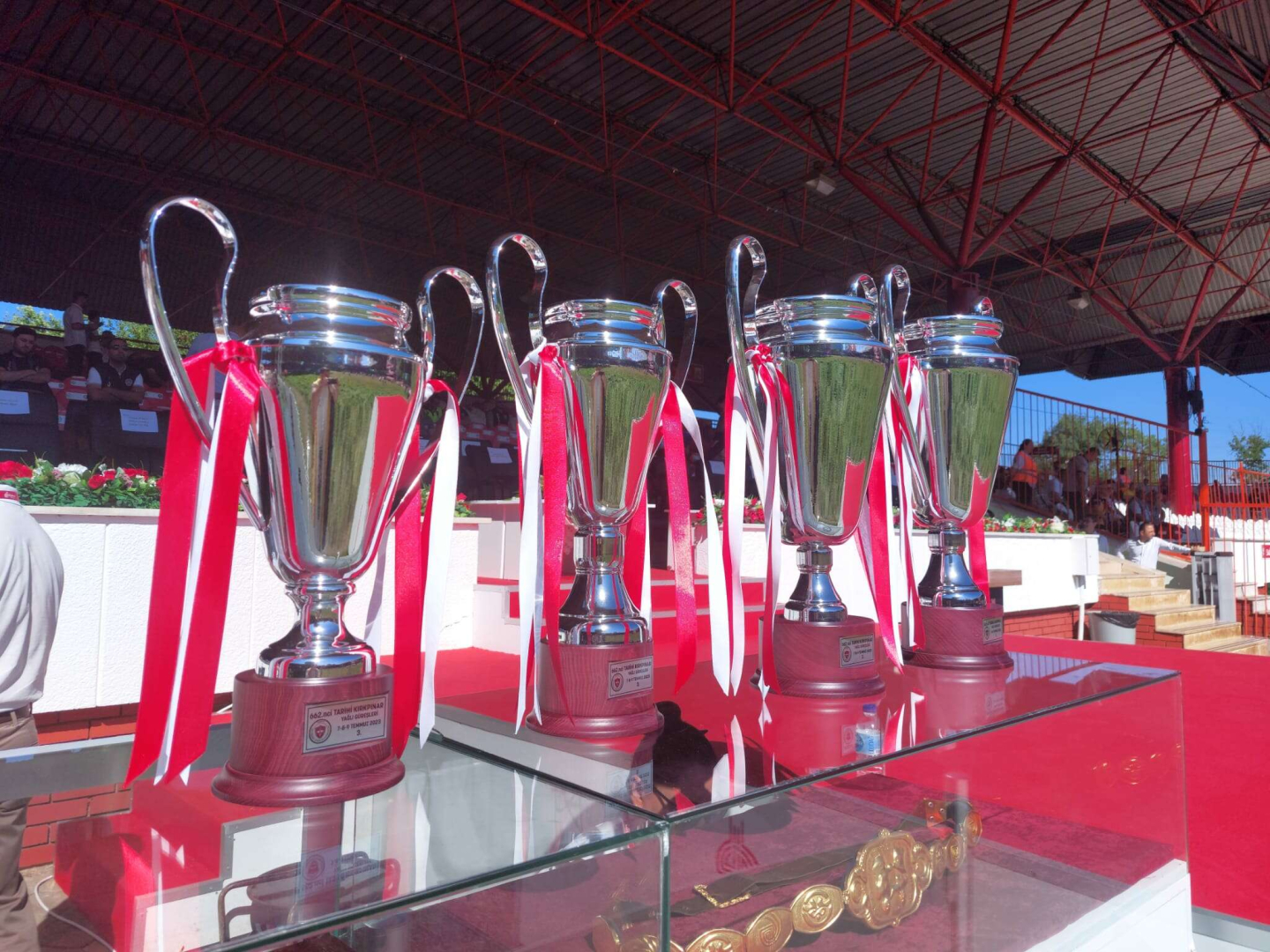 Edirne’de 662. Kırkpınar Yağlı Güreşleri’nde ilk 3’e girecek olan Başpehlivanların kupa ve kemerleri sahiplerini bekliyor. Güreşlerde 1’inci olacak Başpehlivan, 1 milyon lira ödül alarak altın kemeri bir yıl süre ile evine götürecek ve Türkiye Cumhuriyeti’nin Başpehlivanı olacak. 2’inci olan Başpehlivan ise 250 bin lira alacak. 3’üncü olan iki Başpehlivan 125 bin lira alarak dereceye giren pehlivanlar kupaları kaldıracak.