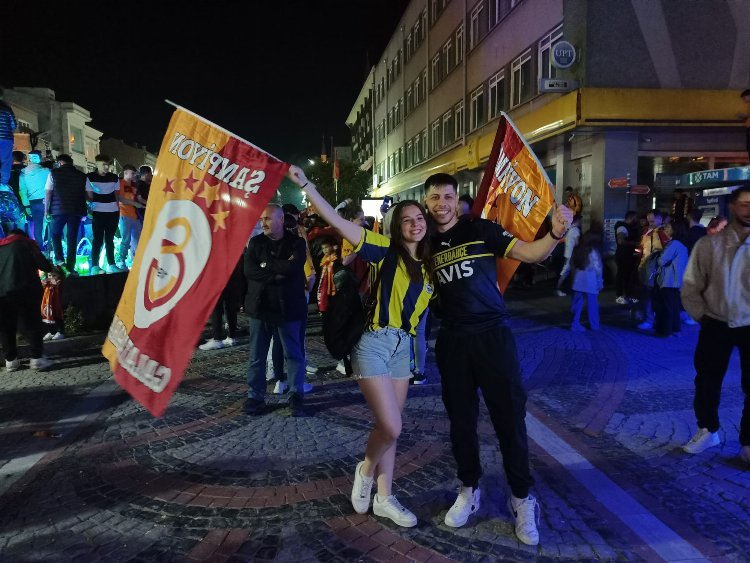 Edirne’de Galatasaray’ın şampiyonluk kutlamalarının Saraçlar Caddesi bölümü zaman zaman ilginç görüntülere sahne oldu. Kutlamalarda Fenerbahçe formalı taraftarların Galatasaraylı taraftarları tebrik etmesi ve birlikte görüntü vermesi dikkat çekti.