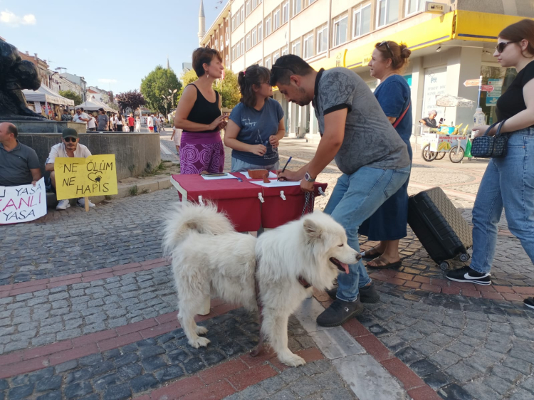 Edirne Kent Konseyi, Hayvan Hakları Çalışma Grubu ve kentteki sokak hayvanlarıyla ilgili derneklerin, Türkiye Büyük Millet Meclisi (TBMM) Genel Kurulu’nda kabul edilen Hayvanları Koruma Kanunu’nda Değişiklik Yapılmasına Dair Kanuna karşı düzenlediği oturma eylemi, 15’inci gününde devam ediyor.