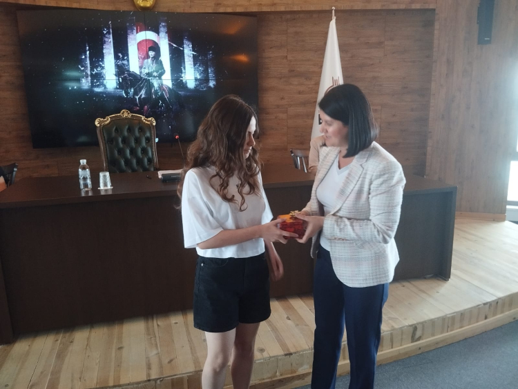 Edirne Belediye Meclisi Temmuz ayı olağan toplantısı Edirne Belediyesi Meclis Salonu’nda gerçekleştirildi. Toplantıda gündem maddeleri görüşülmesi öncesi geçtiğimiz hafta açıklanan LGS sınavlarında Türkiye birincisi olan Bahçeşehir Ortaokulu öğrencisi Işık Ada Canan’a Edirne Belediye Başkanı Filiz Gencan Akın tarafından ödül verildi. Bir diğer birinci olan Edirne TED Koleji öğrencisi Doruk Taha Güven ise kayıt işlemleri için şehir dışında olması dolayısıyla ödülünü almaya gelemedi.