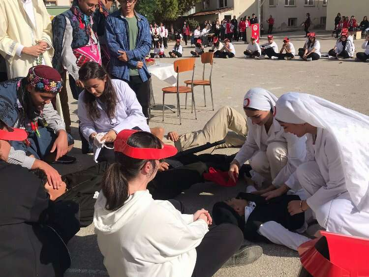 Program saygı duruşu ve İstiklal Marşı ile başladı. Daha sonra Gençlik Marşı ile öğrenciler tarafından Türkiye haritası oluşturulup, haritanın içerisinde Kurtuluş Savaşı ve Cumhuriyet’in kuruluş süreci canlandırıldı. 1. Murat Anadolu Lisesi korosu 100. Yıl Marşını seslendirdi. Öğrencilerin Zeybek gösterisi ise büyük alkış topladı.