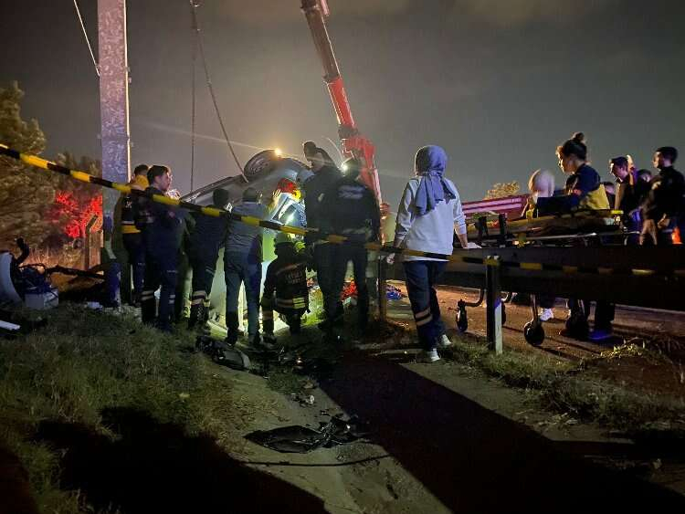 Yaşanan kazada yol kenarında bulunan bariyere çarparak ters dönen araçtaki sürücü hastaneye