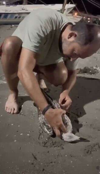 Kurtarılan martı, bir süre kıyıda bekledikten sonra uçarak gözlerden kaybolurken, sosyal medyada hesabından vatandaşlara uyarıda bulunan Gündoğdu, “Kıyıda hareket etmeye çalışıyorken fark ettiğimiz martıyı baştan yavru sandık ama yakınlaşınca, tüm vücuduna misina ve balıkçı iğneleri dolandığını fark ettik. Martının bizden önceki şansı, kıyıya çıkabilmiş olmasıydı. Tüm misinaları temizledikten sonra onu bıraktık. Bir süre gitmeyişi bize teşekkürdü sanırım. Kopan oltalarınızı, köpük, gazete gibi şeylere iğneleri takıp hayvanların ulaşamayacakları yerlere bırakınız. Lütfen dikkat edelim” dedi.