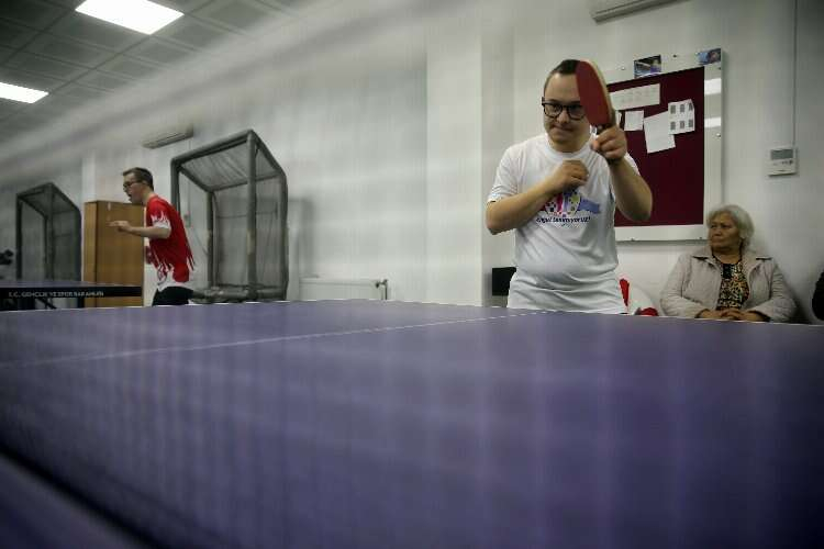 Özel sporcular Kırklareli Gençlik ve Spor Müdürlüğü masa tenisi antrenman salonunda antrenör Mustafa Akyüz gözetiminde çalışmalarına devam ediyor.