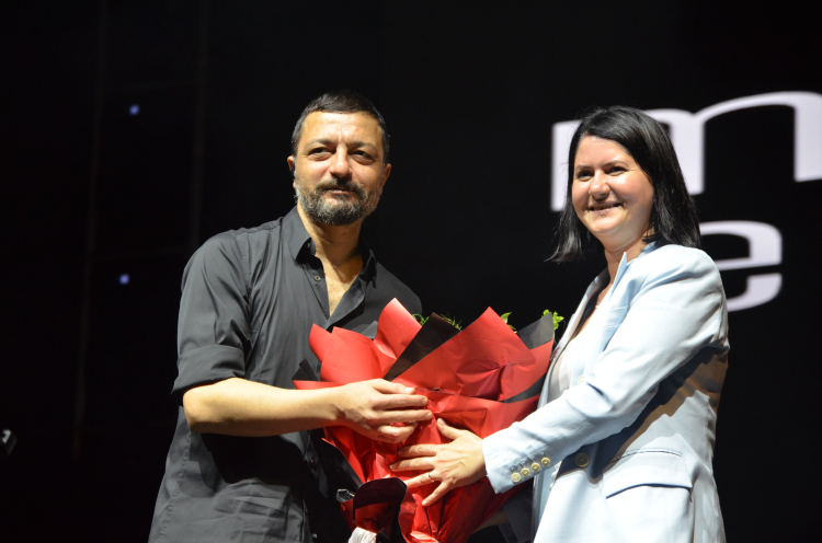 Konserde, Edirne Belediye Başkanı Av. Filiz Gencan Akın, sanatçı Mehmet Erdem’e çiçek takdim etti.