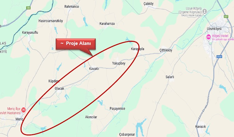 Projenin ÇED başvuru dosyasına göre; santral sahası toplam 6980,86 hektar olan proje, Meriç ilçe merkezine kuş uçuşu yaklaşık 770 metre mesafede yer alıyor. Proje alanı, Trakya Alt Bölgesi Ergene Havzası 1/100.000 Ölçekli Revizyon Çevre Düzeni Planı F16 ve F17 paftalarında tarım alanı ve orman alanı içerisinde yer alıyor. Dosyada İğde RES ve EDT Projesi ile yıllık 560 milyon kWh elektrik üretimi yapılması planlandığı ifade edildi.