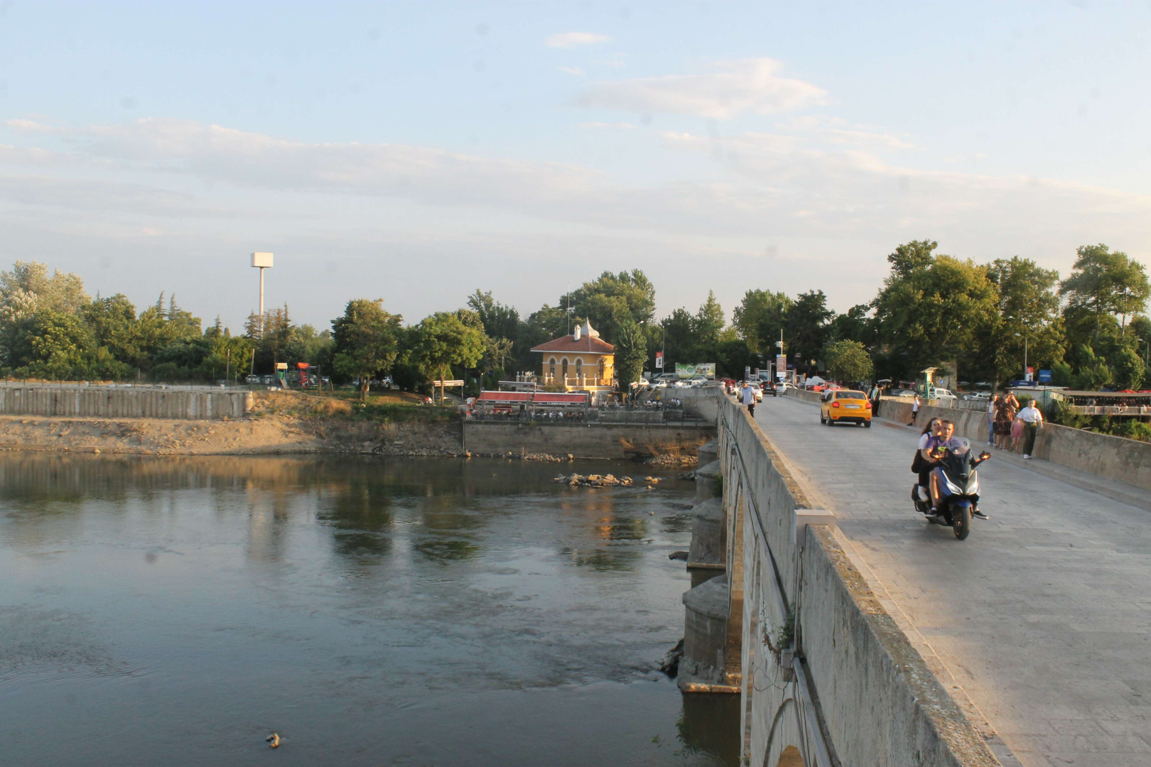 Sıcak havalar nehirlerdeki su seviyesini de etkiliyor. DSİ verilerine göre, Meriç Nehri'nin Kirişhane mevkiinde nisan ayında 95 metreküp/saniye olan su seviyesi, temmuz ayında yapılan ölçümde 53 metreküp/saniyeye düştü. Edirne'de kışın taşkınlarla, yazın ise kuraklıkla gündeme gelen Meriç Nehri’ndeki su seviyesinin düşmesi halkı endişelendiriyor. Su seviyesinin azalmasına bağlı olarak nehrin ortasında adacıklar, taşlar ve ağaç kütükleri gün yüzüne çıkarken, bir köpeğin nehir üzerinde yürüyerek karşıdan karşıya geçmesi görenleri hayrete düşürdü.