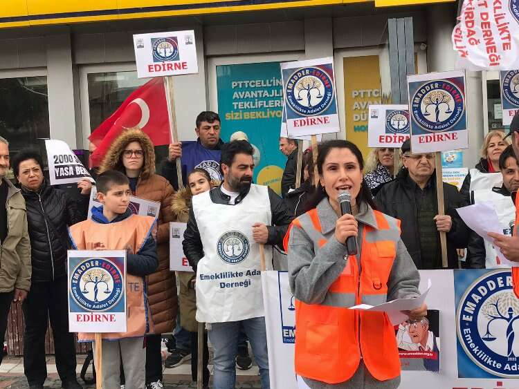 Emeklilikte Adalet Derneği (EMADDER), Edirne’nin Saraçlar Caddesi’nde basın açıklaması gerçekleştirdi. EMADDER Edirne İl Temcilcisi Çiler Kopan tarafından okunan basın açıklamasına derneğin Edirne, Tekirdağ ve Çerkezköy’deki üyeleri de destek verdi.
