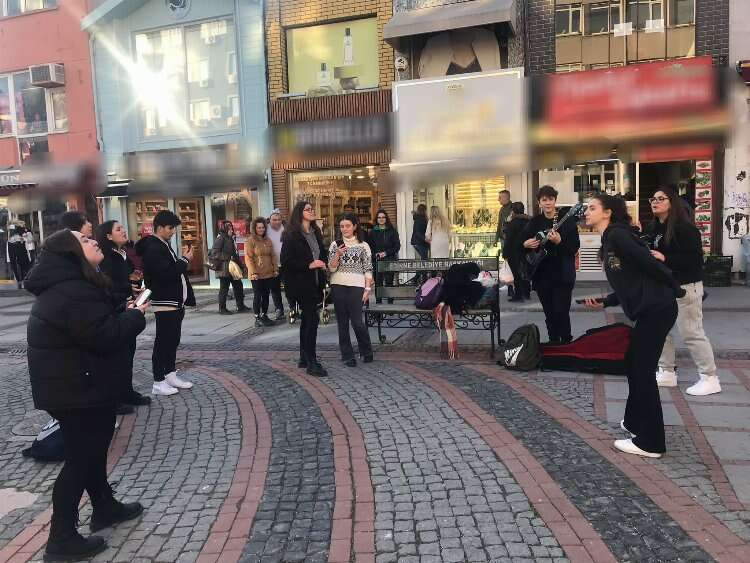 Edirne'nin hareketli ve tarihi mekanlarından biri olan Saraçlar Caddesi'nde, Edirne Sosyal Bilimler Lisesi 12. sınıf öğrencileri yılsonunda yaptıracakları mezuniyet yıllığı masraflarını çıkarabilmek için müzik yaptı. Öğrencilerden Vasfiye Yağmur Polat, maddi anlamda yetersiz oldukları için arkadaşlarıyla akılarına böyle bir fikir geldiğini ve şanslarını denemek istediklerini söyledi.