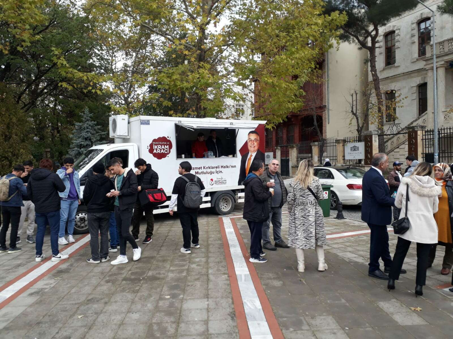 Üniversite kaydı için ilimize gelen öğrenciler, kış aylarında sabah erken saatte işine giden vatandaşlarımız, Dereköy Sınır Kapısı’nda sıra bekleyen gurbetçilerimiz ve daha birçok Kırklarelili, Kırklareli Belediyesi’nin mobil ikram aracının çay, yiyecek ve çorba servislerinden her zaman faydalanıyor.