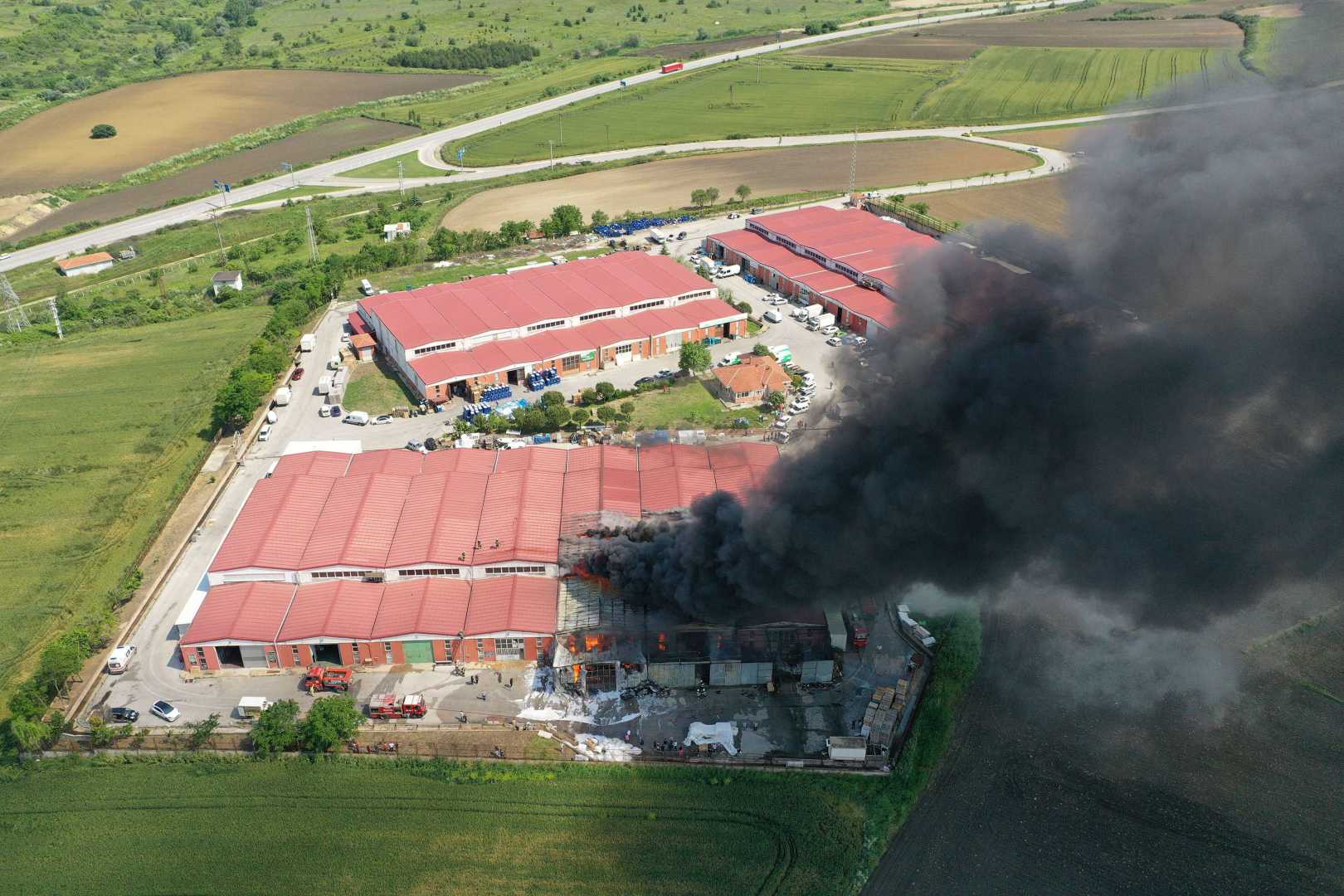 Süloğlu ilçesi yolundaki Edirne Toptancılar ve İmalatçılar Sitesi'ndeki bir mobilya deposunda yangın çıktı.