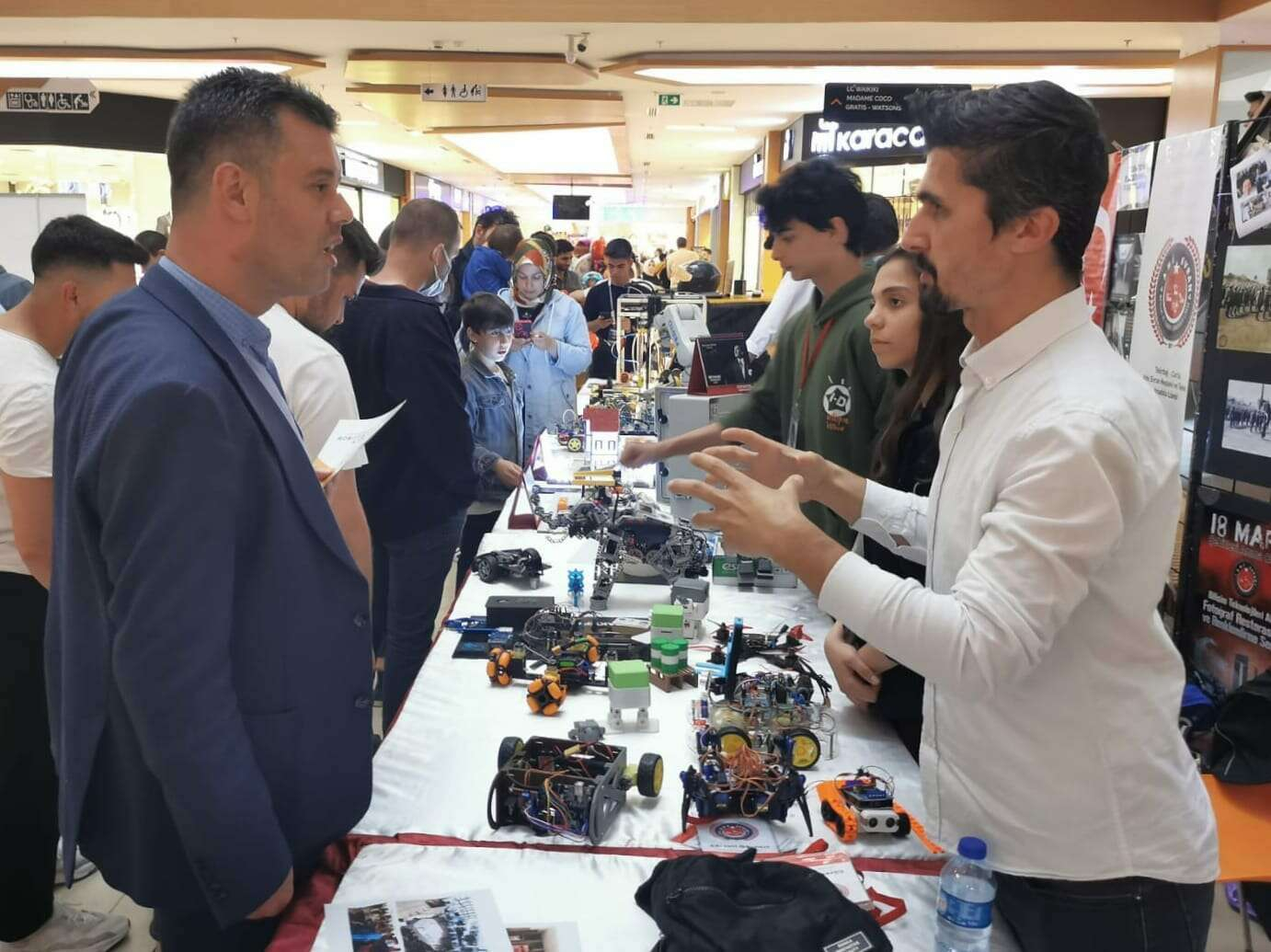 Havacılık, Uzay ve Teknoloji Festivaline katılan Çorlu Ahi Evran Mesleki ve Teknik Anadolu Lisesi öğretmen ve öğrencileri bir Alışveriş Merkezi'nde sergi açtı.