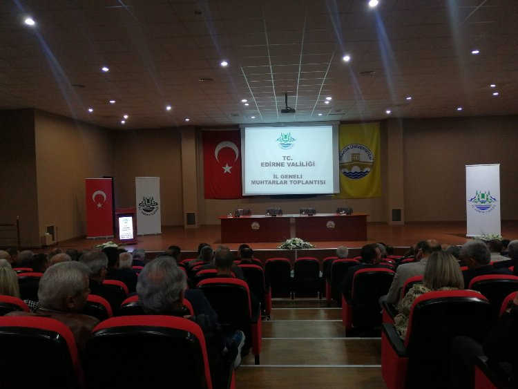 Edirne Valiliği İl Geneli Muhtarlar Toplantısı, Trakya Üniversitesi İktisat Fakültesi Kongre Merkezi’nde düzenlendi. Toplantıya Edirne Valisi Yunus Sezer, Edirne Valisi Yardımcıları Eyyüp Batuhan Ciğerci ve Sıtkı Zehin, Edirne İl Genel Meclisi Başkanı Çiğdem Gegeoğlu, Bölge ve Kurum Müdürleri, ilçe kaymakamları ve muhtarlar katıldı.