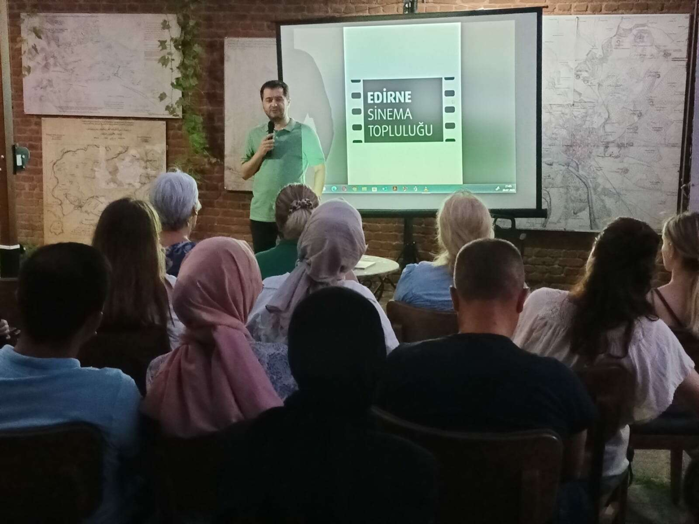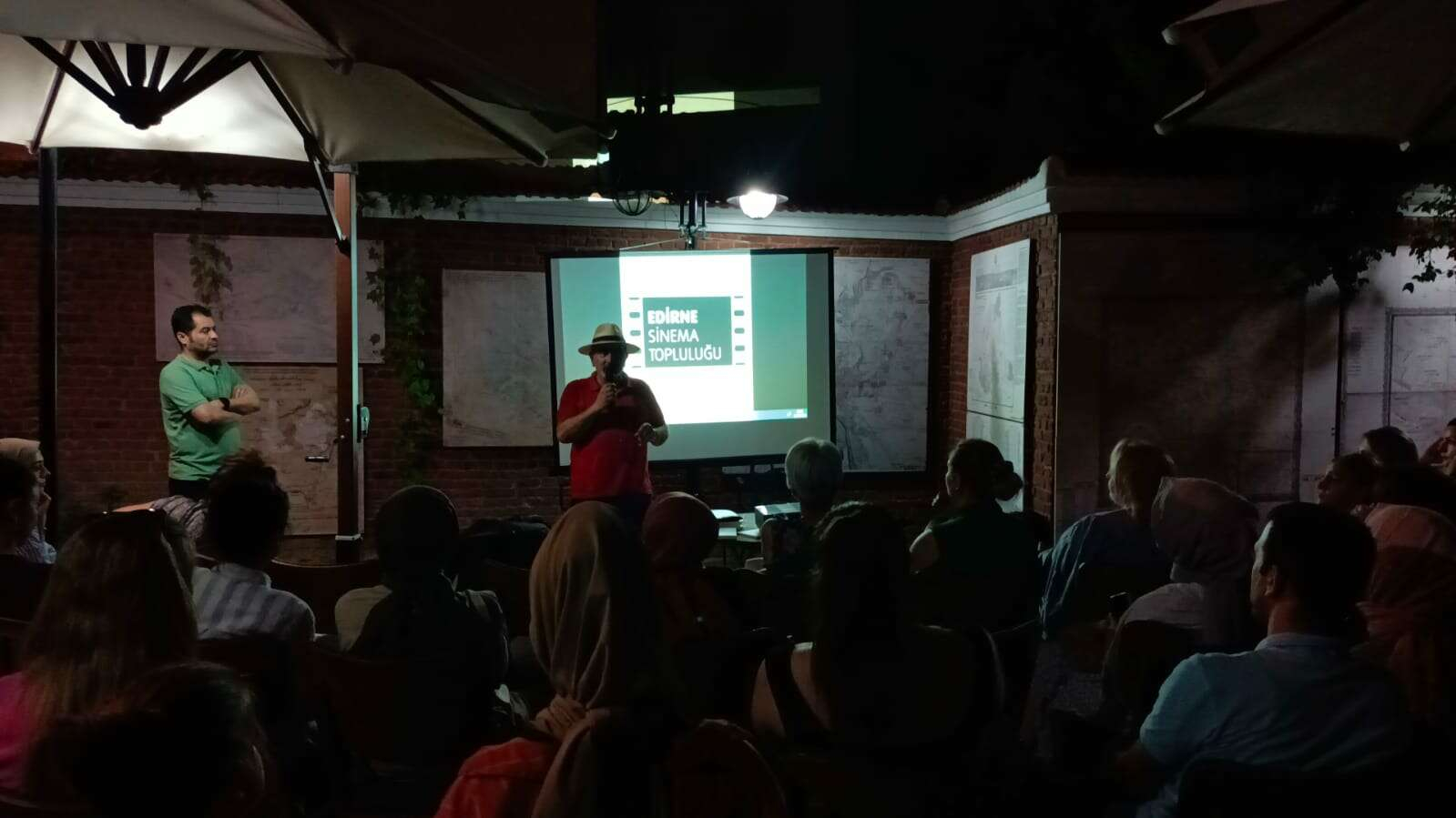 Edirne’de belediyeye ait Atatürk Kültür Merkezi toplantı salonunda eğitim amaçlı düzenlediği ücretsiz film gösterimleri ve okumaları ile dikkat çeken Edirne Sinema Topluluğu, ilk açık hava sineması etkinliğini düzenledi.