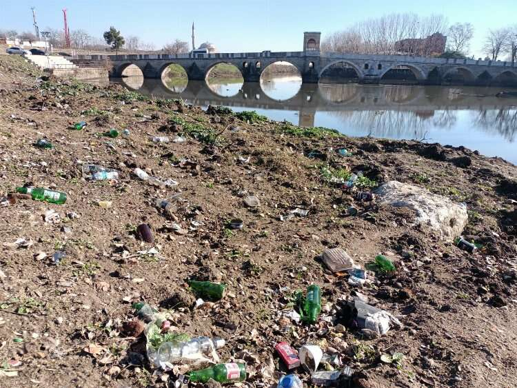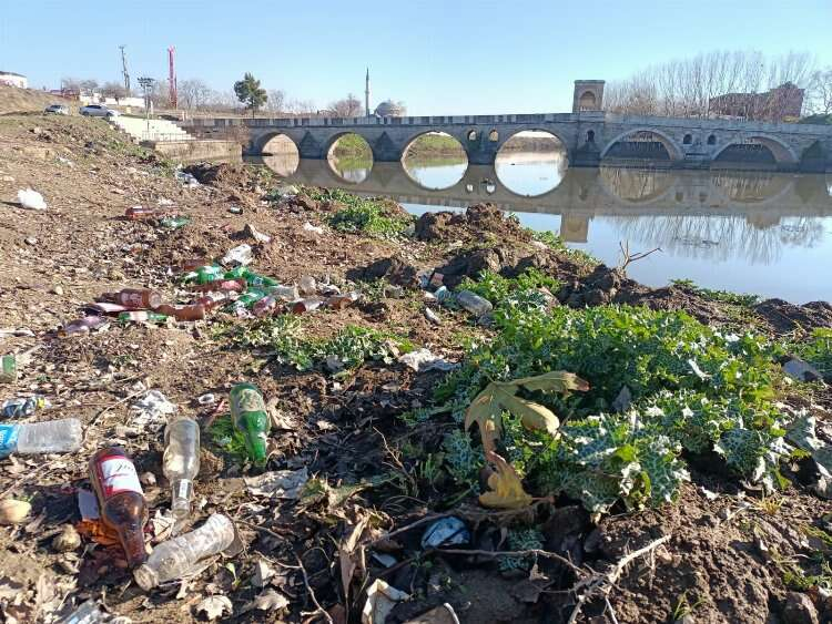 Kent merkezi ile Karaağaç’ı birleştiren tarihi Ekmekçizade Ahmet Paşa (Tunca) Köprüsü’nün girişi ile nehir kıyısı arasında bulunan çöp konteynerinin boş kalmasına rağmen insan eliyle doğaya atılan plastik ve cam şişelerin sayısı her geçen gün artıyor. İnsanların bilinçsizliğine kentin temizliğinden ve nehir kıyılarından sorumlu kurumların duyarsızlığı eklenince Tunca nehri kıyısı, vahşi depolama çöplüklerine benzeyen görüntüsüyle dikkat çekmeye devam ediyor.