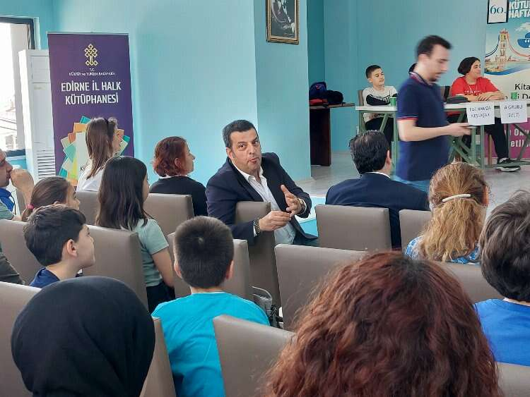 Edirne’de 60’ıncı Kütüphane Haftası kapsamında Kırkpınar Halk Kütüphanesi’nde Edirne Şehit Nefize Çetin Özsoy Bilim ve Sanat Merkezi öğrencileri tarafından “Yapay zekâ nedir? Ve sanat nedir?” konulu münazara etkinliği düzenlendi.