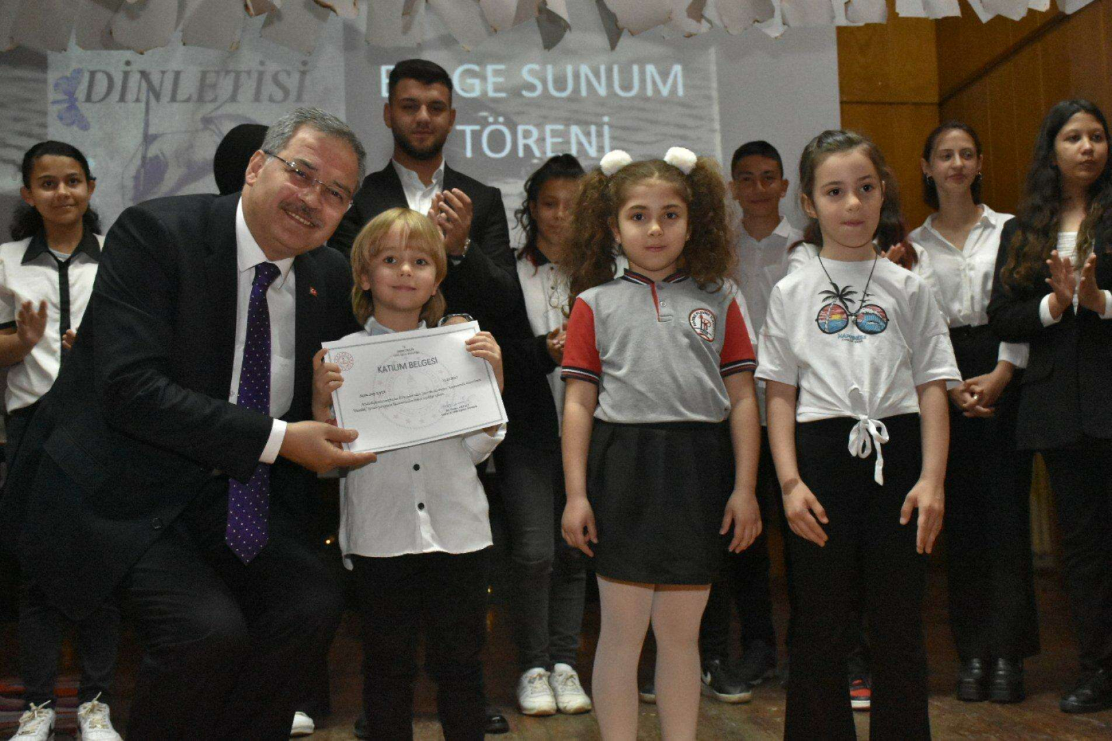 Öğrencilerr, şiir dinletisine özel hazırlanan sahnede ve fon müzikleri eşliğinde şiirlerini seslendirdi. Programın ardından katılımcı öğrencileri ve kendilerini dinletiye hazırlayan öğretmenlere 'Katılım Belgesi' verildi.