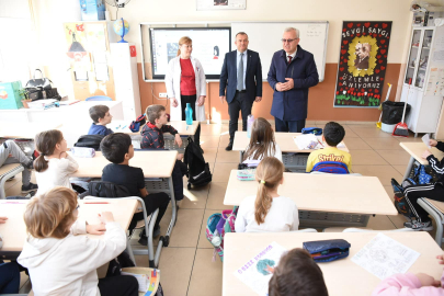 Keşan Belediye Başkanı Mustafa Helvacıoğlu ilçedeki Raşit Efendi İlkokulu’nu ziyaret ederek öğrenciler ile bir araya geldi. 3/D sınıfının hayat bilgisi dersine giren Başkan Helvacıoğlu öğrencilere Belediye Başkanlığının nasıl yapıldığını anlattı.