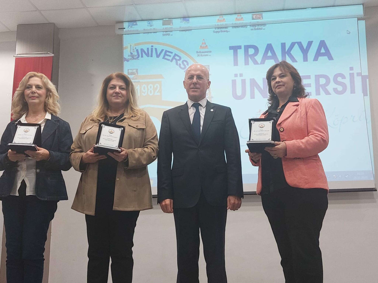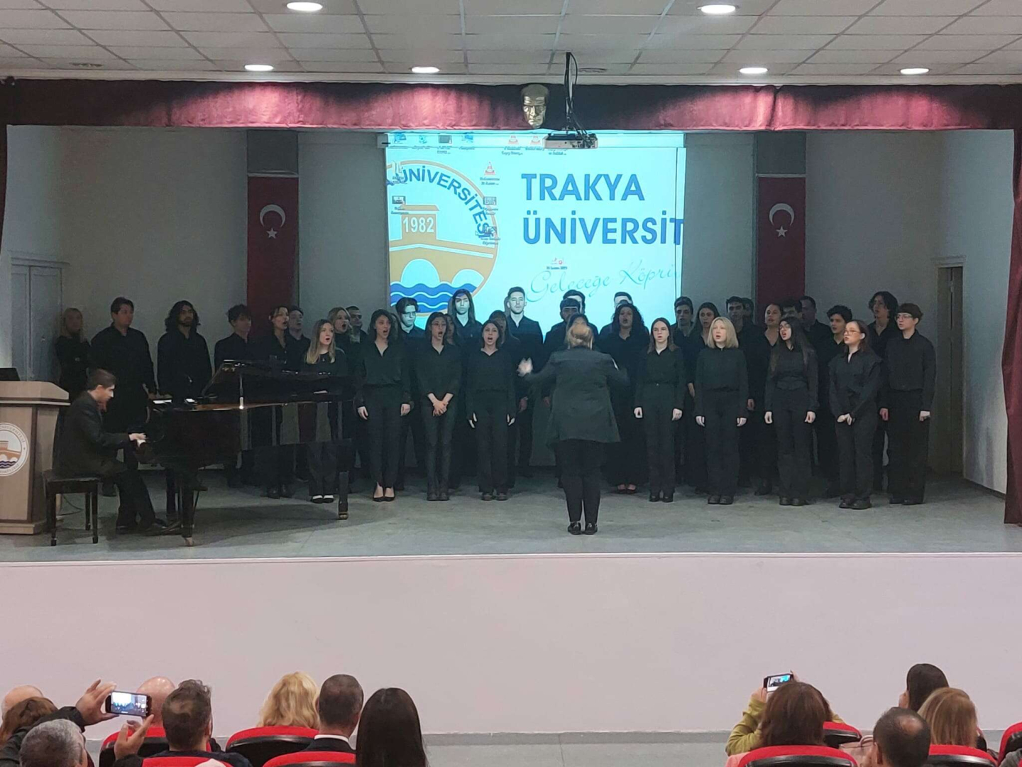 Trakya Üniversitesi Eğitim Fakültesi, 24 Kasım Öğretmenler Günü kutlama etkinlikleri kapsamında Mehmet Akif Ersoy Konferans Salonu’nda program gerçekleştirdi. Saygı duruşu ve İstiklal Marşı’nın okunması ile başlayan programda Eğitim Fakültesi Müzik Eğitimi Anabilim Dalı Çok Sesli Korosu tarafından gösteri, emekli olan personeller plaket takdimi, ‘Öğretmen Kimdir?’ isimli film gösterimi, Trakya Üniversitesi Rehberlik ve Psikolojik Danışmanlık Topluluğu (PDR) tarafından ‘Veciz Sözlerle Öğretmen’ gösterisi, ‘Ben Öğretmen Olmak İstiyorum’ şiirinin okunması ile devam etti.