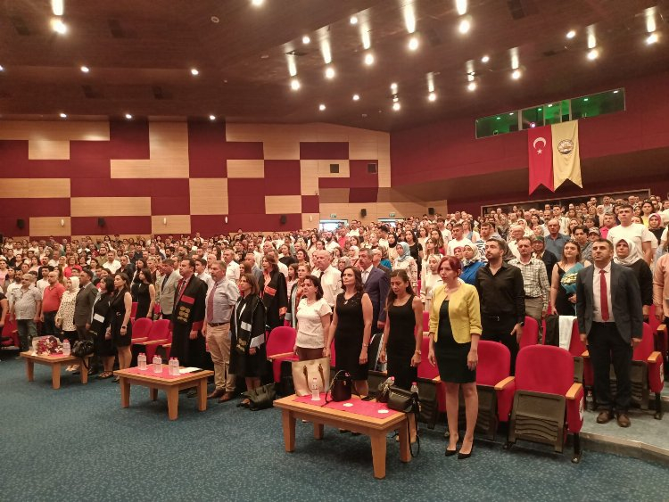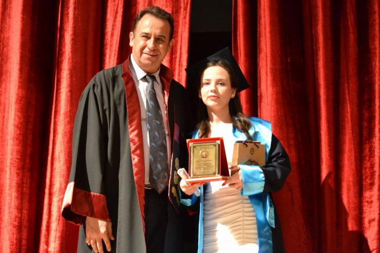 Törende öğrenciler adına konuşmayı MYO birincisi Sevda Yılmaz yaptı. Yılmaz, okul birincisi olarak konuşmasını yapmaktan dolayı mutlu ve gururlu olduğunu belirterek, tüm mezunlara, akademisyenlere ve ailelere teşekkür etti. Konuşmasında ailesine özel bir yer veren Yılmaz, salondakilere duygusal anlar yaşatırken; “Annem; bana hem anne, hem baba oldun. Ne zaman yorulsam yaslanacak dağ oldun. Hep elimden tuttun, başaracağıma hep inandın. Sen mükemmel bir annesin. Ben başarılı olduysam hepsi senin emeklerin, bana olan inancın sayesinde. Bana söylemiştin ya hani, ‘Hayat bazen en sevdiklerimizi, onsuz yaşamam dediklerimizi alıyor elimizden. Ama biz gayret etmeye, çabalamaya mecburuz. Hayat bu; acı zamanlar da olacak, güzel zamanlar da. Biz birbirimize dayanak olalım’ diye. Bu sözünü hiç unutmadım, unutmayacağım. Babamın elini son kez tutarken söz verdiğim gibi her zaman yanındayım annem. Sevgili ağabeylerim; ‘Başarı herkesten önce gelir. Hiçbir şey seni yolundan alıkoymasın’ deyip, her zaman maddi manevi yanımda oldunuz. Bana yaslanacak omuz oldunuz. Ben, siz yanımdayken hiçbir şeyden korkmadım, korkmayacağım da. Gururlu ve sevgi dolu bakışlarınız için teşekkür ederim. Sizleri çok seviyorum. Sevgili babam; şu an bedenen yanımda olamasan da, sarılamasam da, beni gördüğünü ve benimle gurur duyduğunu, ‘Canım kızım başarmış’ dediğini kalbimle hissedebiliyorum. İyi ki senin kızınım. Sonsuza kadar kalbimde yaşayacaktım ve gittiğim her yerde yanımda olacaksın. Bir parçam hep eksik. Seni çok özlüyorum” ifadelerini kullandı. Yılmaz’ın konuşması sırasında gözlerinin dolması dikkat çekerken; salondaki tüm katılımcılar da duygulandı.
