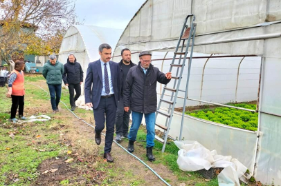 Son olarak Küküler köyünde ikamet eden çiftçi Nebil Kılıç'ın serasını ziyaret eden Kaymakam Okur, çiftçinin yetiştirdiği sezonluk ürünler hakkında detaylı bilgiler aldı.