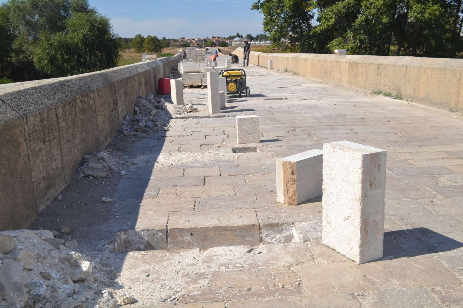 Edirne’nin tarihi köprülerinde bazı taşların yıpranması ve yerlerinden çıkmasıyla oluşan çukurlar, sürücülere zor anlar yaşatıyordu. Onarım çalışmaları, Edirne Kültür Varlıklarını Koruma Kurulu’nun izniyle Karayolları tarafından yürütülüyor. Köprüdeki onarım süresince ulaşım diğer köprülerden sağlanacak.
