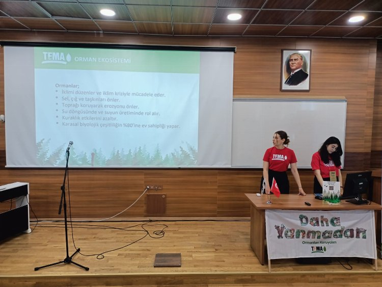 Yılmaz, sunumunda orman yangınlarında yalnızca ağaçların yanmadığına dikkat çekerek; “Birçok canlı, orman yangınlarında telef oluyor, yok oluyor. Ormanlar neye yarıyorlar ve biz orman yangınlarında neleri kaybediyoruz? Ormanlar iklimi düzenliyorlar, sel, çığ ve taşkınları önlüyorlar. Toprağı koruyarak, erozyonu önlüyorlar. Su döngüsünde rol alıyorlar. Kuraklık etkilerini azaltıyorlar. Karasal, biyolojik çeşitliliği yüzde 80’ine ev sahipliği yapıyorlar. Orman yangınlarında aslında orman yangını olduğunda biz bunların hepsinin zarar gördüğünü söyleyebiliriz” ifadelerini kullandı.