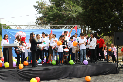 Dünya Otizm Farkındalık Günü kapsamında okul bahçesinde düzenlenen programda saygı duruşunda bulunuldu, İstiklal Marşı okundu.