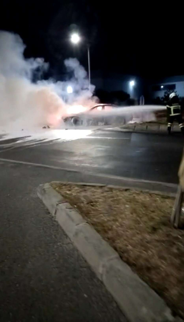 Kaza sonrası alev topuna dönen araçta bulunan 4 kişiden 3’ü yaralandı.