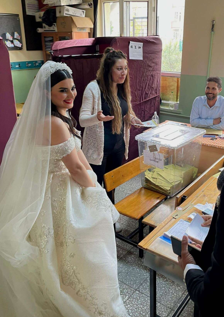 Oy verme işleminin ardından çift, düğün için okuldan ayrıldı.