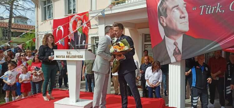 Havsa’da Belediye Başkanlığı Devir Teslim Törenine Kortej ve bando eşliğinde gelindi. Geçmiş dönem Belediye Başkanları ile birlikte Atatürk anıtına Çelenk sunulmasının ardından Havsa Belediye Binası önünde konuşmalar gerçekleştirildi. İlk olarak söz alan Havsa Geçmiş Dönem Belediye Başkanı Av. Aydın Balkan, “Kıymetli Havsalı hemşehrilerim. Hepinizi sözlerime başlarken saygı ve sevgiyle selamlıyorum. Hoş geldiniz. Bugün göreve geldiğimizin tam beşinci yılı. Oğuz Başkandan aldığımız hizmet bayrağını Hüseyin Başkanımıza teslim edeceğiz. Beş yıllık hizmet dönemim boyunca hakkımın geçtiği olduysa hakkınızı helal edin, ben halkımıza helal ediyorum. Herkese saygılarımı ve sevgilerimi sunuyorum. Allah’a emanet olun” diye konuştu.