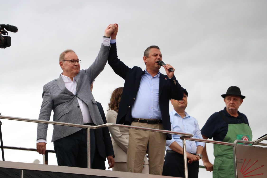 Daha sonra CHP parti otobüsüne geçen Özel, yerel seçimlerde partilerini destekleyen seçmene teşekkür etti.