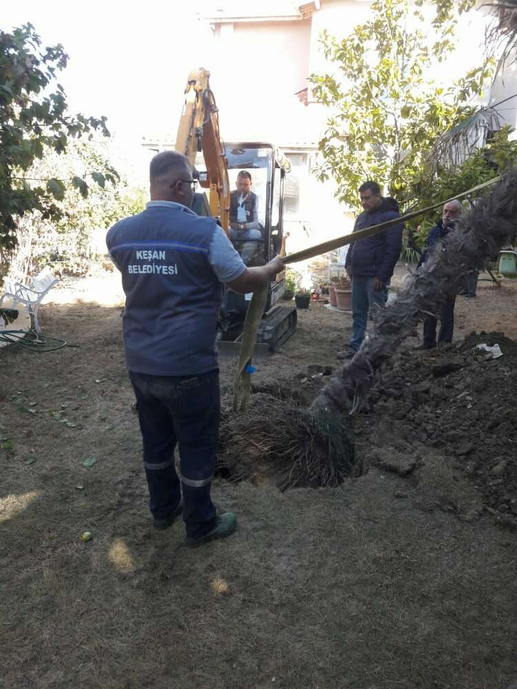 Keşan Belediyesi tarafından yapılan açıklamada; vatandaşın talebi üzerine Erikli Sahili Yalı Caddesi üzerinde imar yoluna kalan 6 adet palmiye ağacından ikisinin Erikli sahilindeki parseline, 4 adet palmiye ağacının ise Keşan’daki parseline taşındığı kaydedildi.